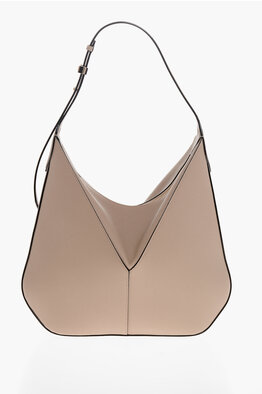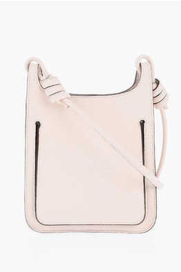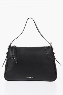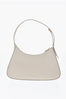 Hammered Leather Shoulder Bag with Logo Detail