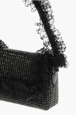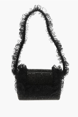 RESIDENCY CHRISTOPHER KANE Solid-Color Shoulder Bag with All-Over Crystals and Lace Details