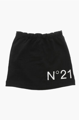 Brushed Cotton Skirt with Printed Logo