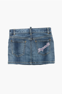 Denim Skirt with 4 Pockets and Embroidered Logo