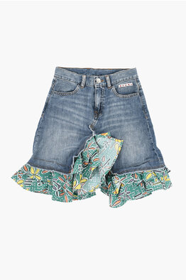 Denim Skirt with Printed Poplin Detail