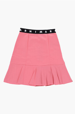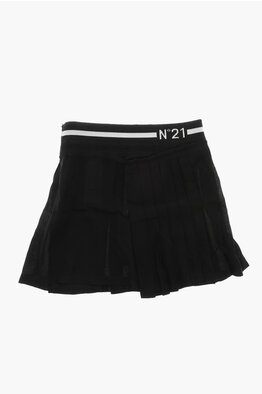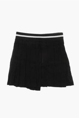 Pleated Chiffon Skirt with Logo Elastic Waistband