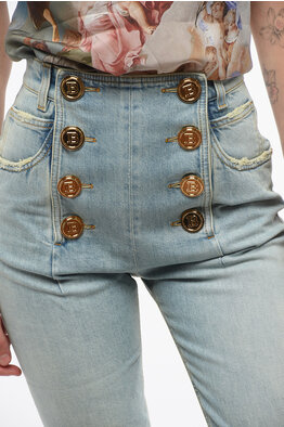 High-Waisted Slim Fit Jeans with Golden Buttons 13cm