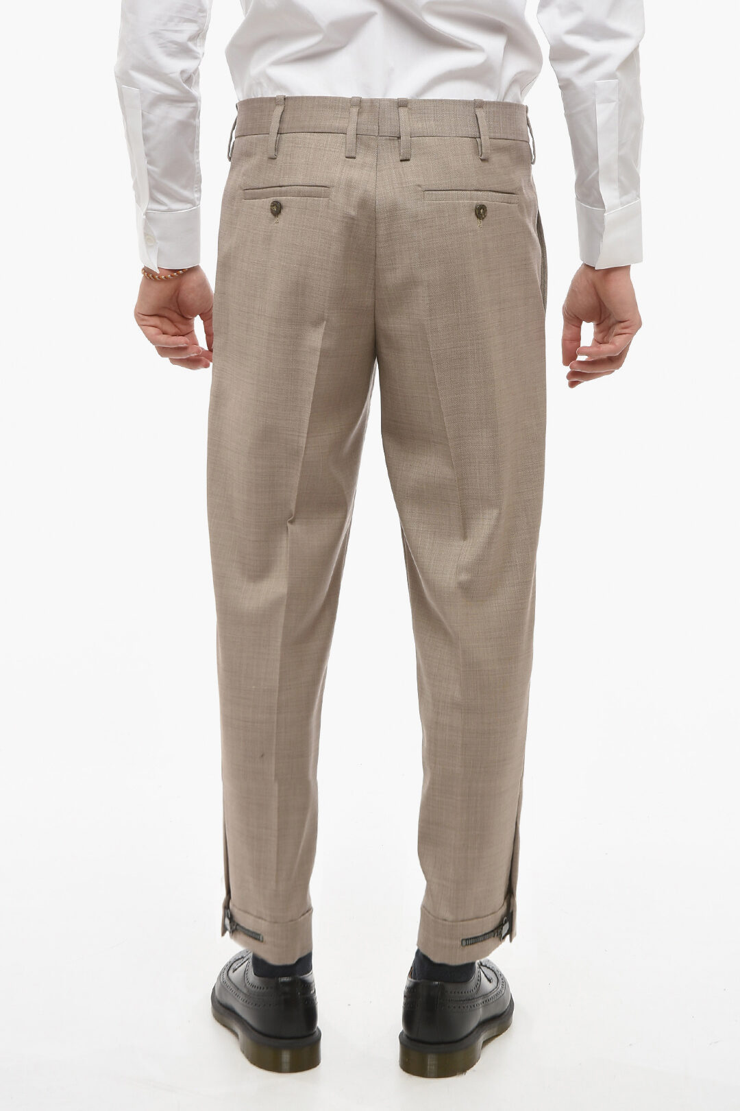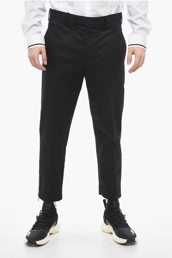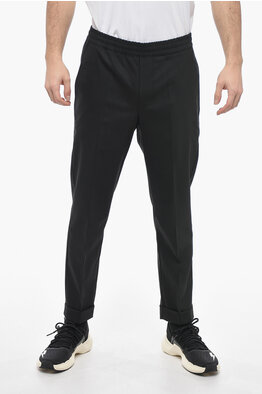 Slim Trousers with Hopsack Pattern and Metal Application