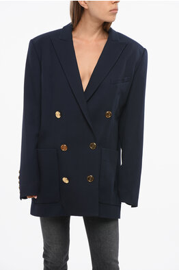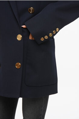 Virgin Wool Double-Breasted Blazer with Logoed Buttons