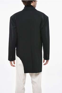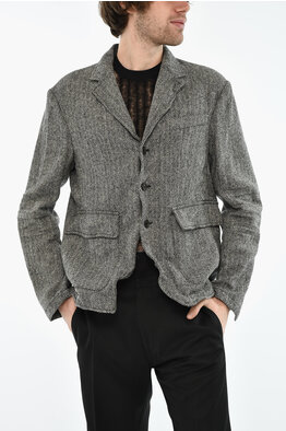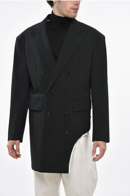 Virgin Wool Double-Breasted Jacket 80'S with Raw-Edge Cut and Peak Lapel