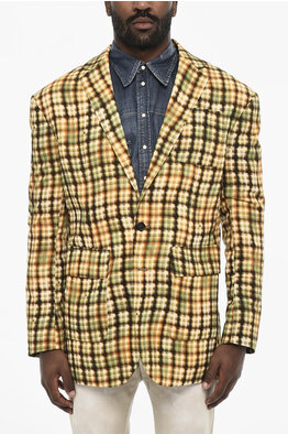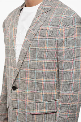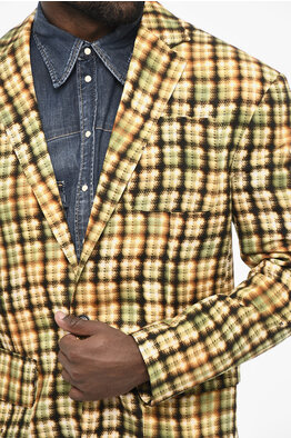 3-Button Herringbone Wool Blazer with Vegan Leather Patches