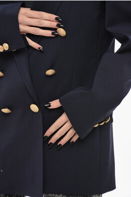 Double-Breasted Virgin Wool Blazer with Flap Pockets