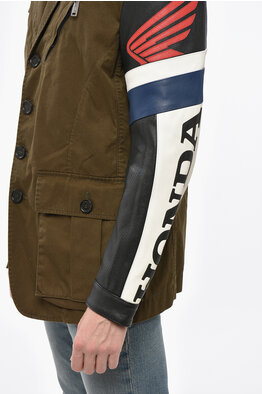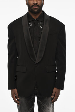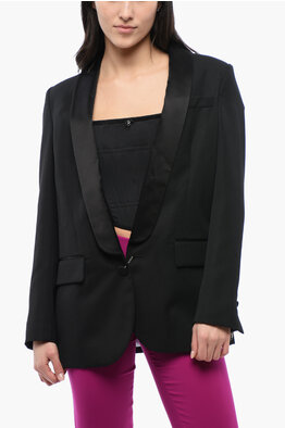 Oversize One-Button Cotton Jacket with Strass Lapel