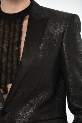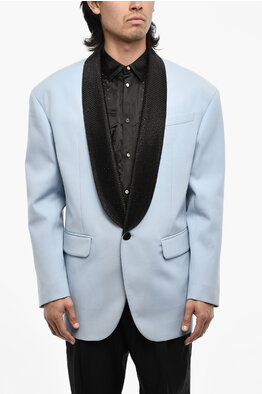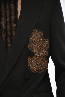Wool-Blend Blazer CRYSTAL FRINGED with Shawl Lapel