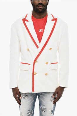 Terry Cotton Double-Breasted Blazer With Gold Buttons