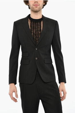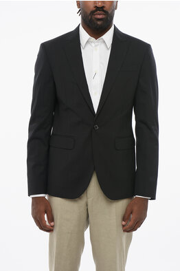 Two-Button Stretch Virgin Wool Blazer with Pointed Lapel