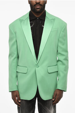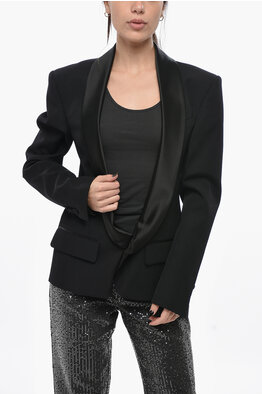 Wool-Blend Double-Breasted Blazer with Satin Peak Lapel