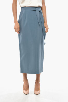 Cotton Pencil Skirt with Belt