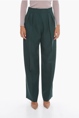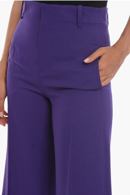 Single-pleated Wool and Silk Flared Gaucho Pants