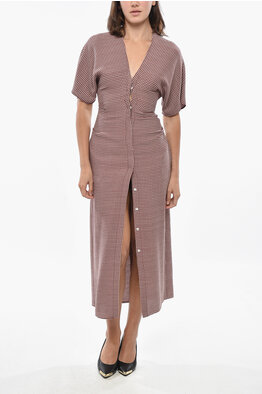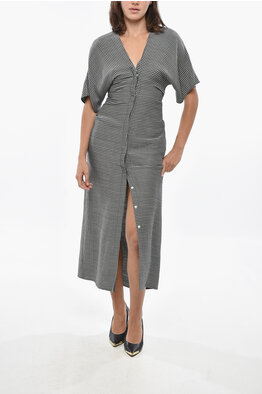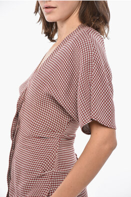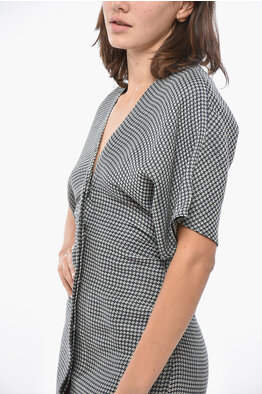 Houndstooth Patterned Wool Blend Shirt Dress