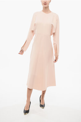 Silk Blend Long Dress With Bat Sleeves
