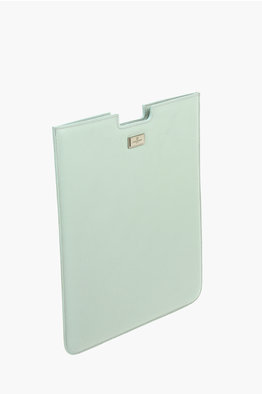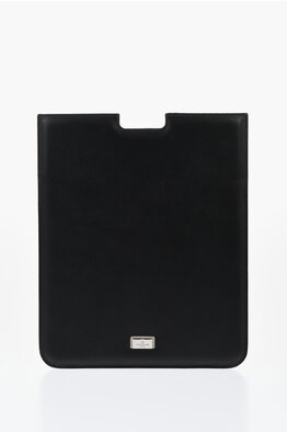 Solid Color Leather Tablet Holder with Silver-Tone Logo