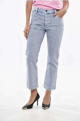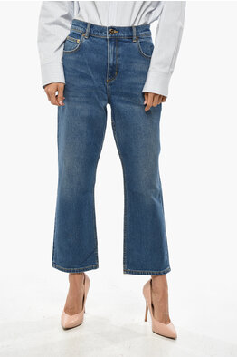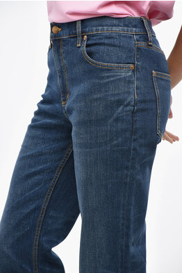Acid-Wash Flare Jeans with Logo Button 20cm