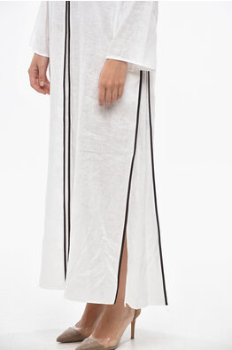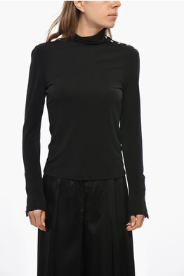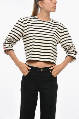 Crew-Neck Striped T-Shirt with Draped Sleeves