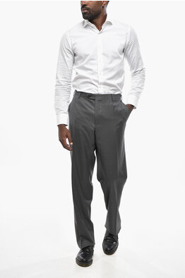 Stretch Virgin Wool Trousers with Belt Loops