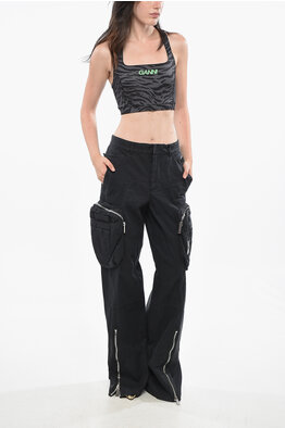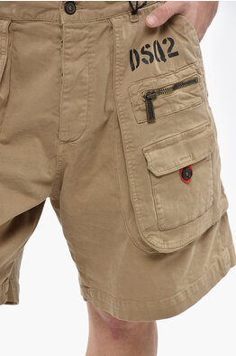 Stretch Cotton Cargo Shorts with Contrasting Edge