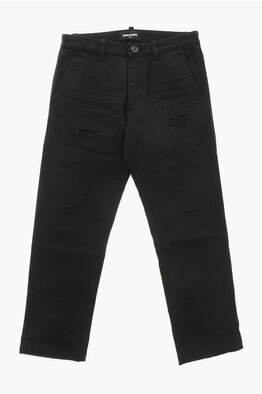 Cotton Casual Trousers with Distressed Effect