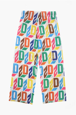 Cropped-Fit Cotton Pants with Monogram Pattern