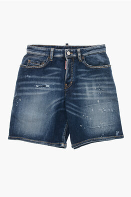 Denim Shorts with Distressed Detail