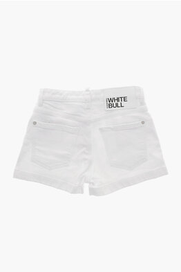 WHITE BULL Light-Wash Shorts with Logo Button