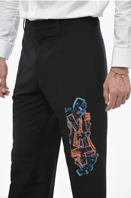 SEASONAL Wool Blend GRAFFITI Pants with Embroidery