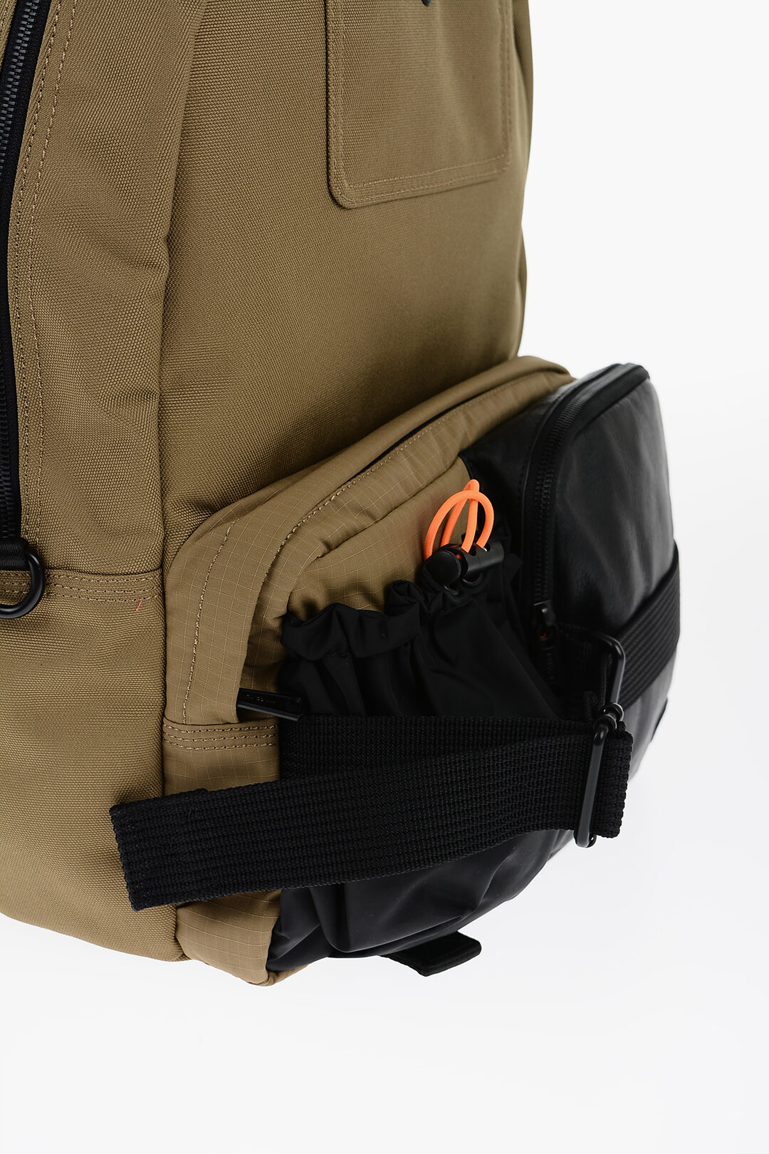 Two-Tone Multi-Pocket Backpack with Leather Trim