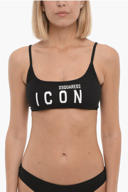 ICON Stretch Cotton Sports Bra with Contrast Logo Print