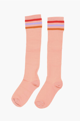 Long Ribbed Nylon Socks with Contrast Details