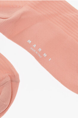 Ribbed Cashmere Blend Socks with Embroidered Logo