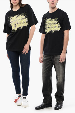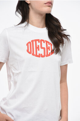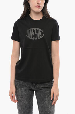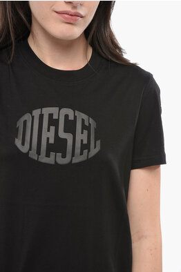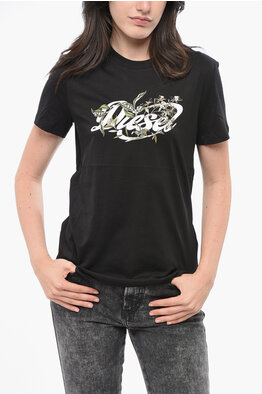 Cotton Crew Neck T-Shirt with Flocked Logo