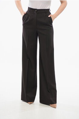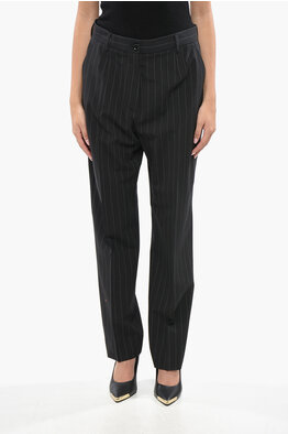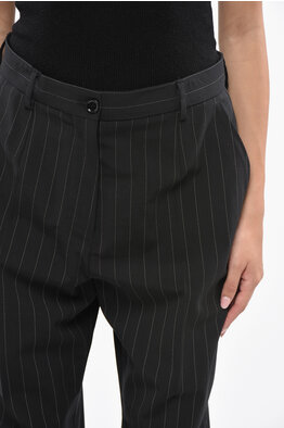 Pinstriped Double-Pleat Virgin Wool Trousers
