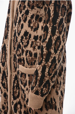 Mixed Cashmere Animal-Print Cardigan With V-Neck