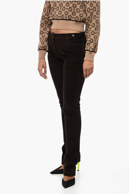 Ribbed Velour Bootcut Trousers with Belt Loops
