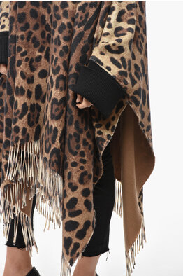 Wool-Blend Poncho with Animalier Pattern and Cuffs