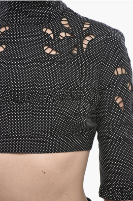 Cotton Poplin Polka-Dot Crop Top with 3/4 Sleeves and Cut-Out Details