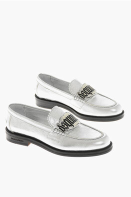 Metallic Crackle-Effect Leather Loafers with Metal Detail