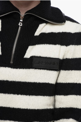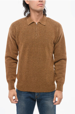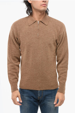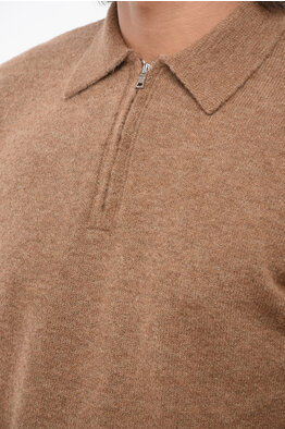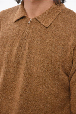 Alpaca Blend Sweater with Polo Neck and Half Zip