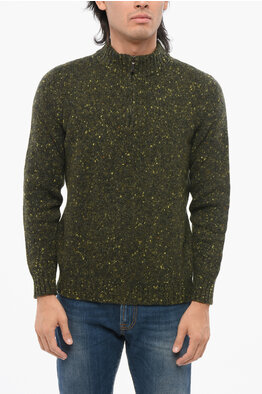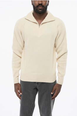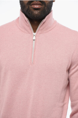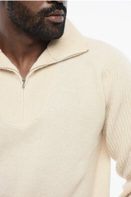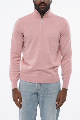 Wool and Cashmere Mock Neck Sweater with Half-Zip