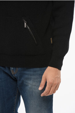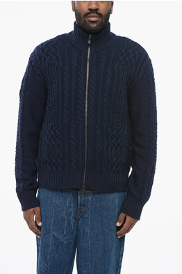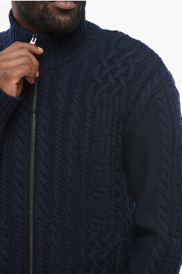 Virgin Wool Zip-up Pullover with Cable Knit Design